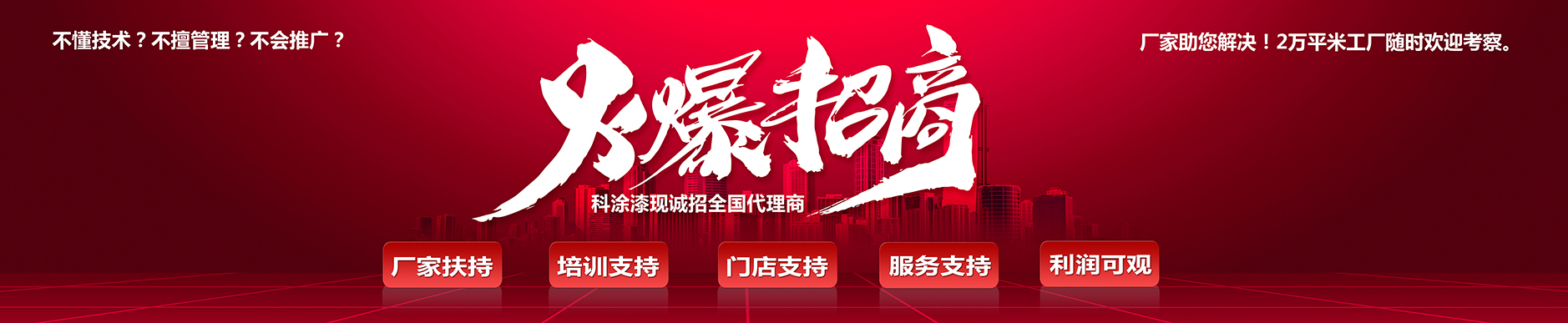 代理涂料品牌,我們會(huì)有一套系統(tǒng)的流程和方案,科涂漆有專門的特別支持計(jì)劃,以促進(jìn)我們的合作伙伴變得更大更強(qiáng)。...